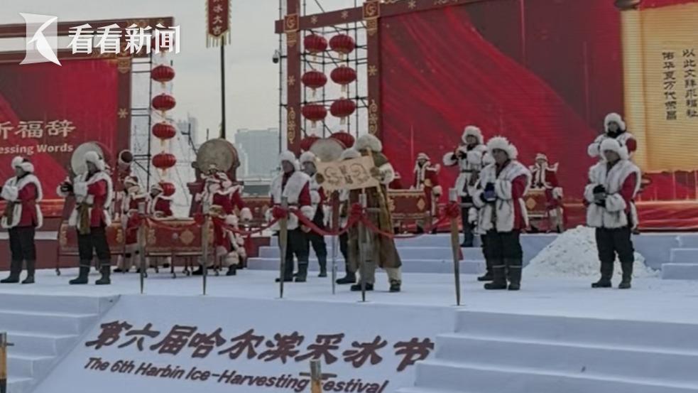 哈尔滨采冰节开幕,松花江上收获第一块冰